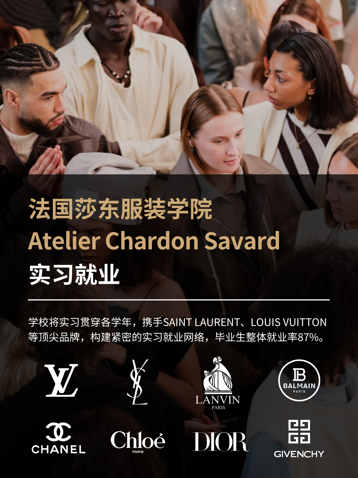领英数据显示,法国莎东毕业生就业率约87%,与IFM不相上下(86%),常见就业去向包括SAINT LAURENT、CHANEL、LOUIS VUITTON等奢侈品牌,就业竞争力扎实。